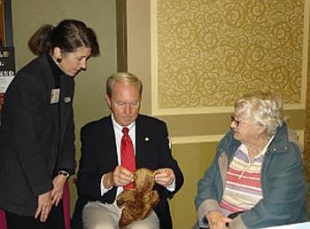 Bette from Chicago, brought the 1906 Steiff teddy bear to the teddy bear show in Schaumburg, IL. The bear was a gift from her sister's estate. Bette wanted to know the bear's value and Ken Yenke, a renown teddy bear appraiser gave her an appraised value of $5,000.00.