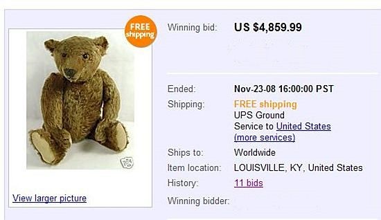 1906 Steiff Teddy Bear Sells for $4859.99 on eBay Auction